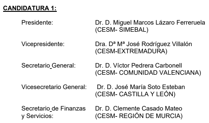 La candidatura encabezada por el Dr. LAZARO FERRERUELA (CESM-SIMEBAL) se ha alzado con la victoria en las elecciones a la CESM celebradas en el seno del Congreso de CESM celebrado el pasado fin de semana en Murcia.